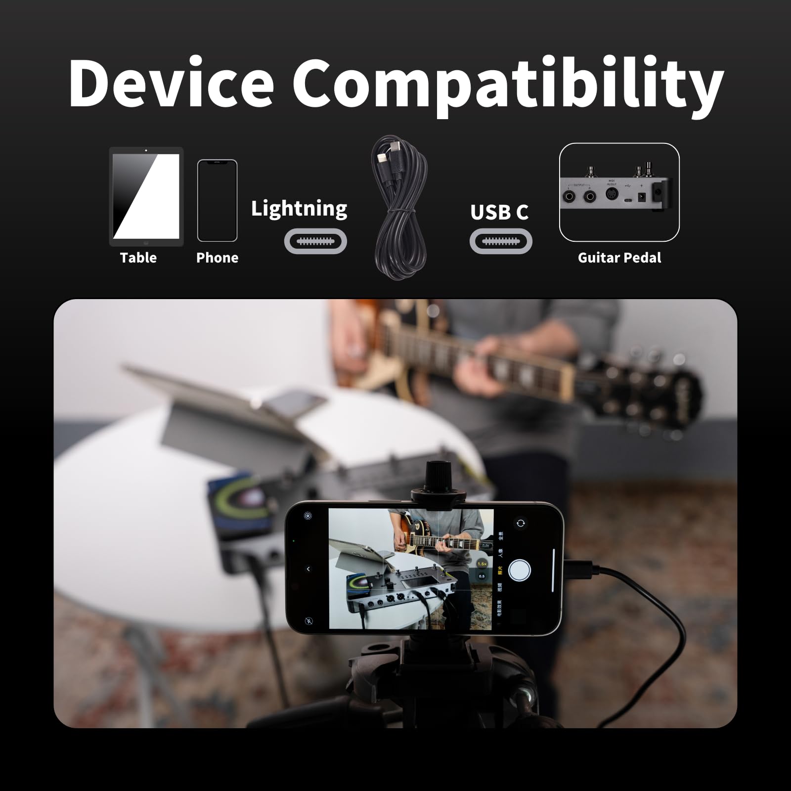 MOOER 2 Meters OTG Cable for Instruments Phone Recording, Guitar Live Streaming, for Lightining—