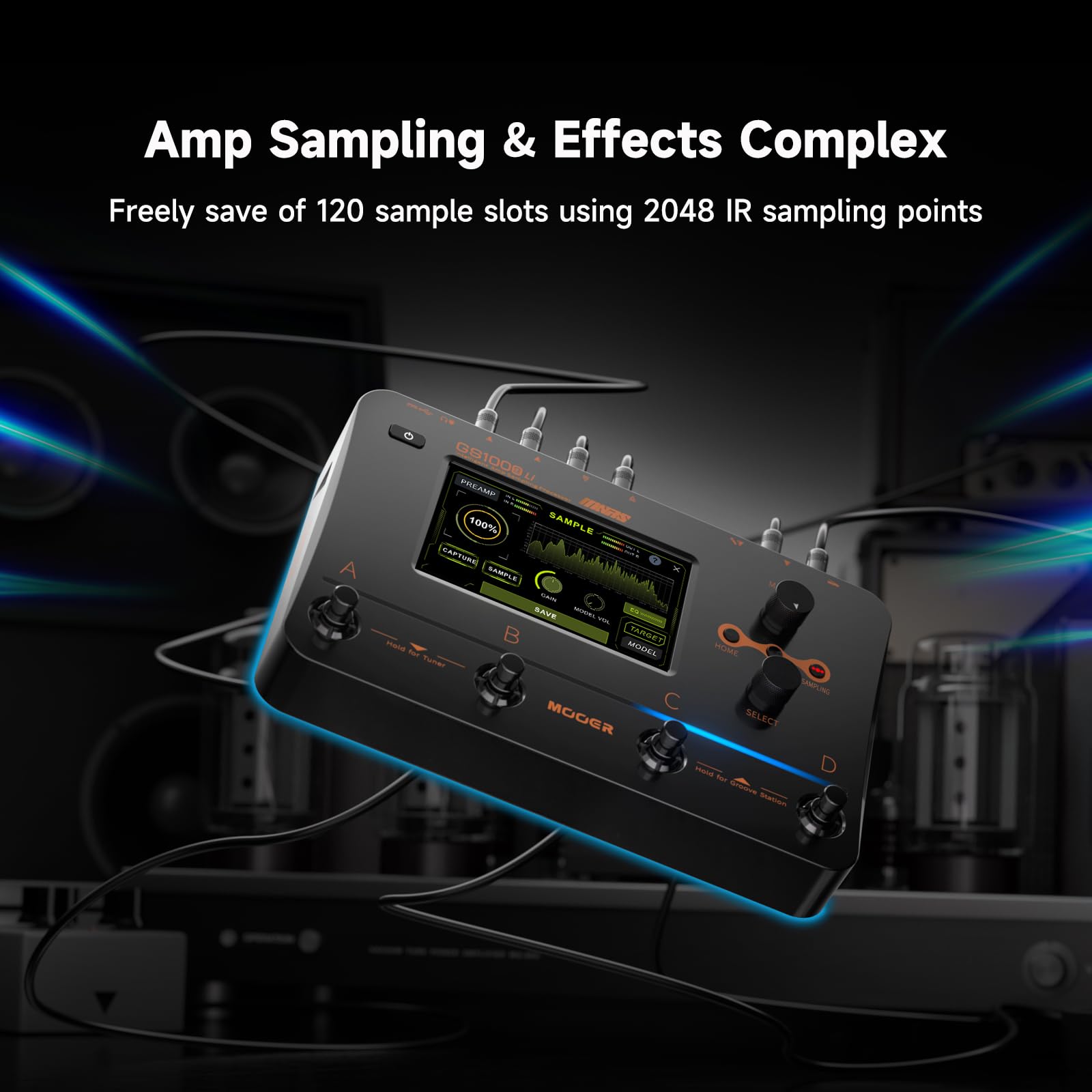 MOOER GS1000 Li Guitar Multi-Effect Processor Amp Sampling Dual Effects Chains with XLR Mic Input, Touch Screen, and 350+ Effects, Electric Guitar Pedal with 120 Sampling Slots, MIDI Port, Battery