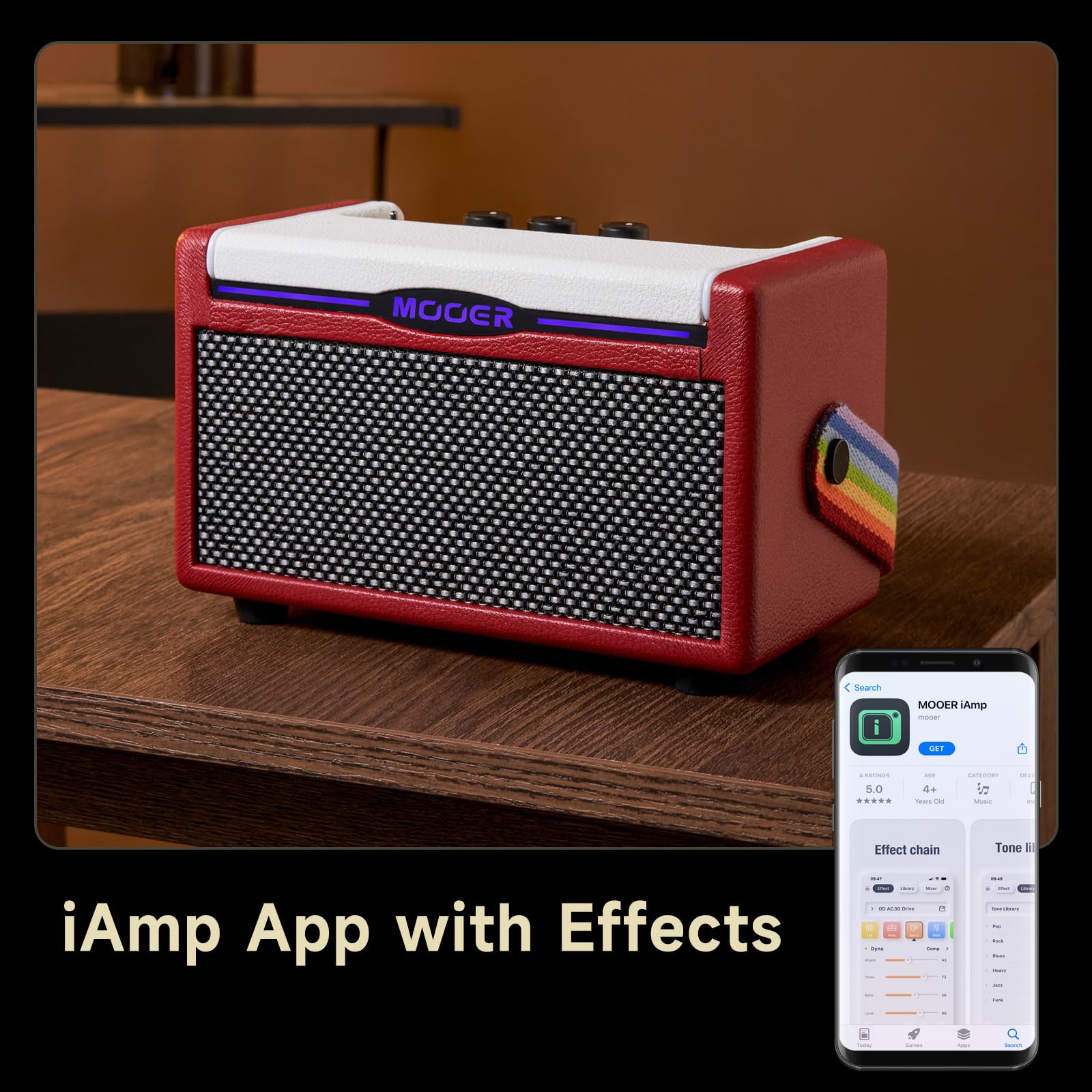 -5%MOOER SD10i AI Practice Guitar Amplifier Combo 10W with Smart Effects App, Stero Sound Portable with LED Light, 49 Effects Types, 52 Amp Models, Loop, Drum Machine, Tunner (Red)—